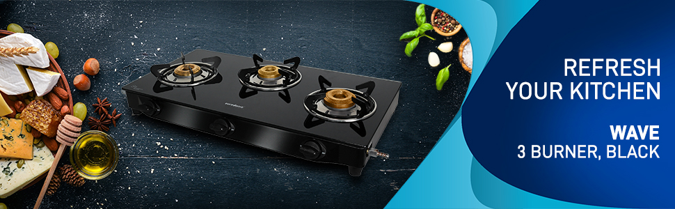 Crompton Built-In Gas Hob Optime FullBrass 78cm 3 Burners Midnight Black HOB-OPFB783TI-MBL